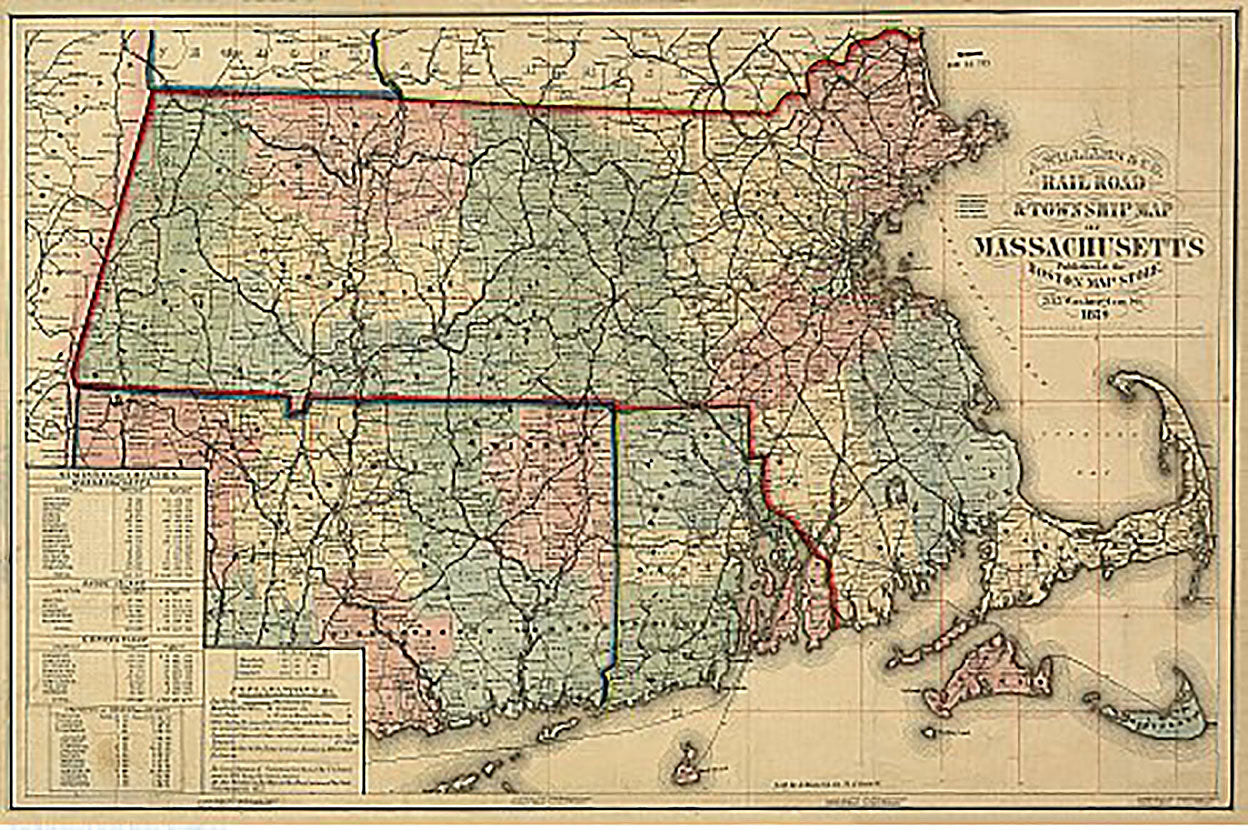Rail road and township map of Massachusetts 1879 โ American Map Store