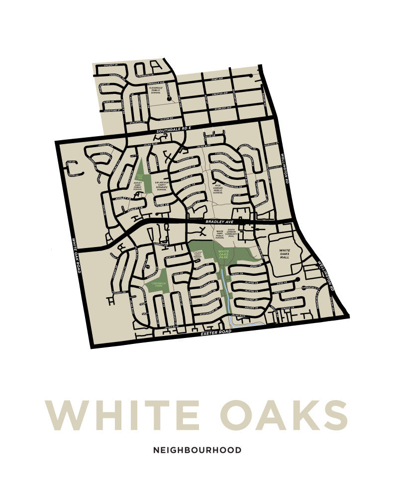 White Oaks Neighbourhood Map Print โ Jelly Brothers